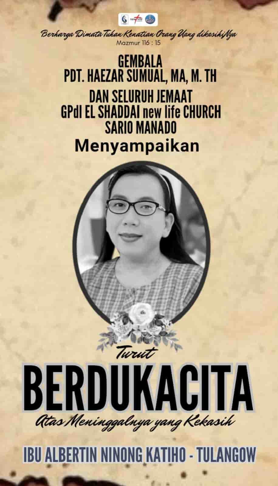 Ada jam-jam tertentu dalam hidup yang tidak butuh banyak kata—hanya butuh Tuhan dan keluarga rohani. Dan dini hari ini, jam itu datang. Rabu, 18 Februari 2026, pukul 00.03 WITA, di RS Wolter Mongisidi Teling, Ibu Albertine Katiho Tulangow menutup mata untuk dunia—dan membuka mata untuk Rumah Bapa. Momen itu disaksikan oleh orang-orang yang paling mengasihi beliau: suami dan anak, Allen Katiho. Ini bukan sekadar perpisahan. Ini adalah panggilan pulang.